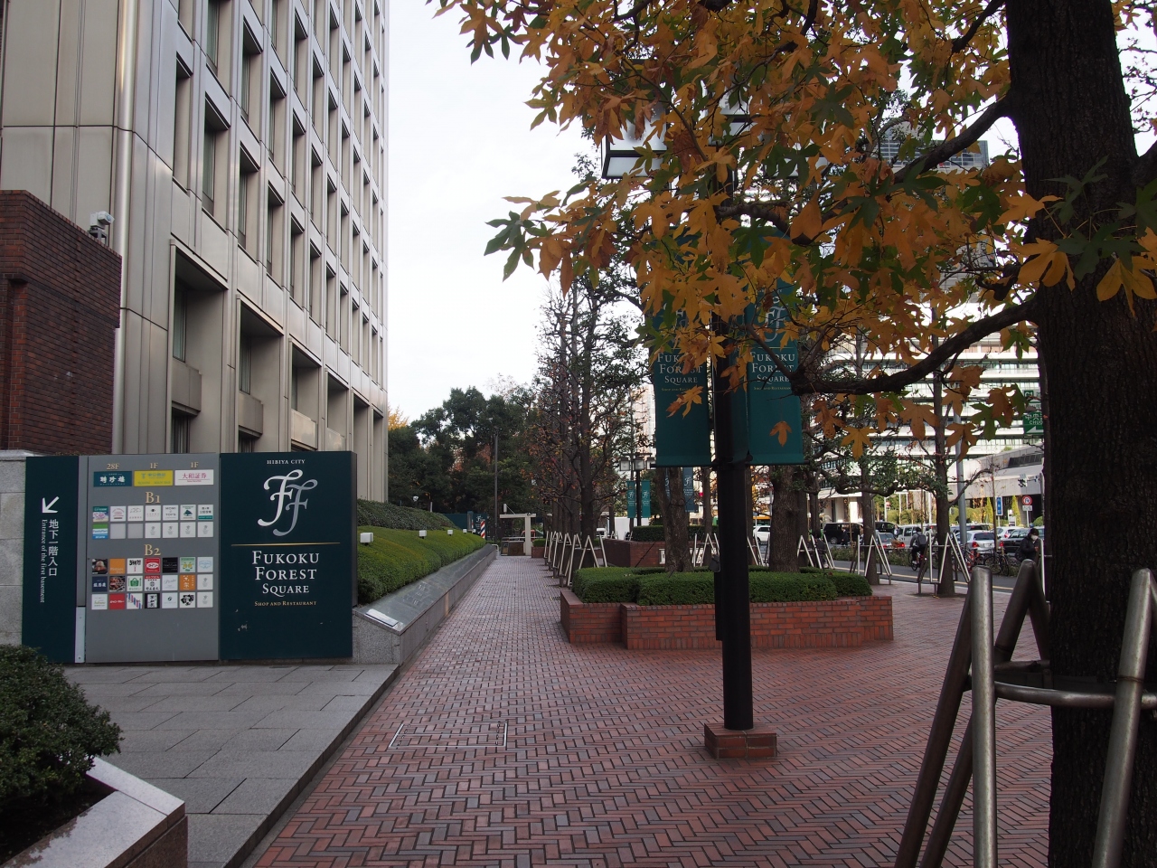 富国生命ビルは日比谷シティの日比谷公園側にあるオフィースビルです。地下には飲食店街があるので、昼時には会社員の人も多く見かけます。富国生命ビルの前は細長い広場になっていて、フコクフォレストスクウェアという名前が付いています。木々があったりして、ゆったりと歩いて行けます。