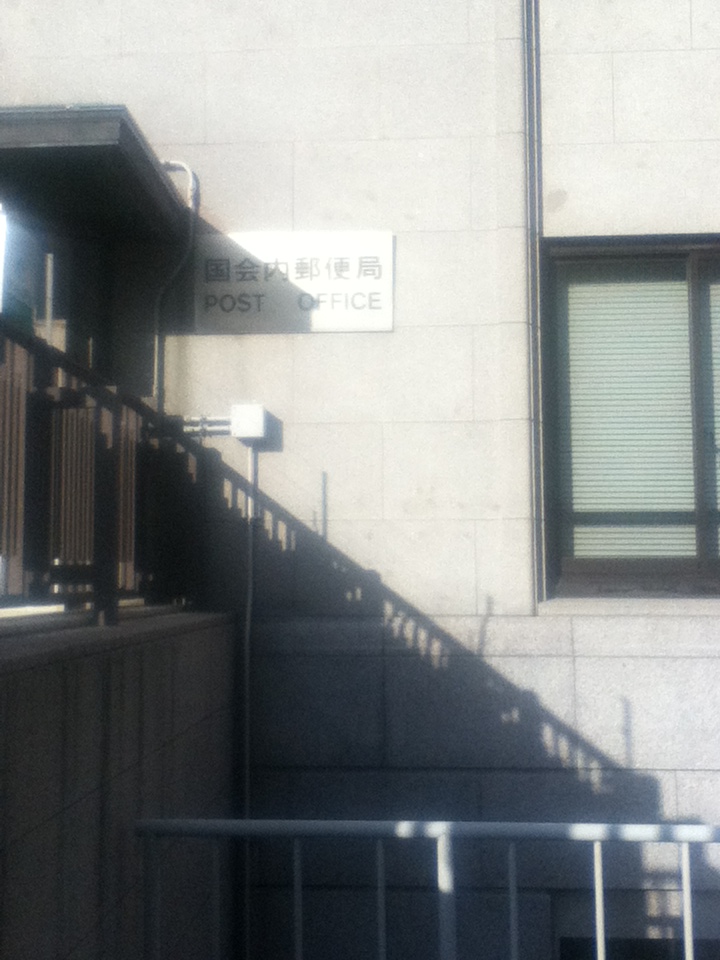 永田町駅の南側、国会議事堂内にある。入口は議事堂の西側の広い道路沿いにある。歩道から鉄格子で囲まれたやや狭いを通路を入ると、すぐ入口ドアがある。右側にはこちらの看板が掛けられている。入る際に、特にチェックされることはなくスムーズである。局内はそれほど広くないが、一般的な郵便局と同様、郵便、貯金、保険のサービスを行っている。ATMも設置されている。ただ、営業は平日のみで土曜、日曜、休日は休みである。風景印を押してもらえるようである。この界隈で郵便やATMを利用する際に、訪問するのもいいかもしれない。