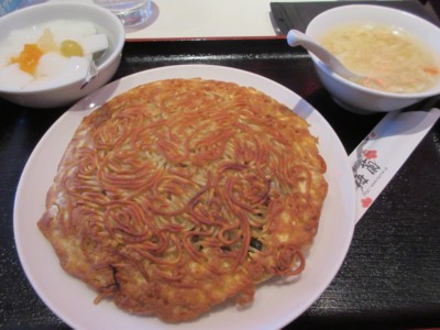 パリパリに固められた麺は、溶き卵をかけて焼いてあるみたいです。