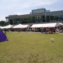 県庁の旧庁舎を利用した施設で正面側と裏側が全然違う2つの顔をもった建物です。金沢城側はガラス張りになっていて、オシャレなレストランがありました。また前には大きな広場があり、ワインのイベントが開催されていて大盛況。ほかにもさまざまなイベントが開催されているスポットのようです。