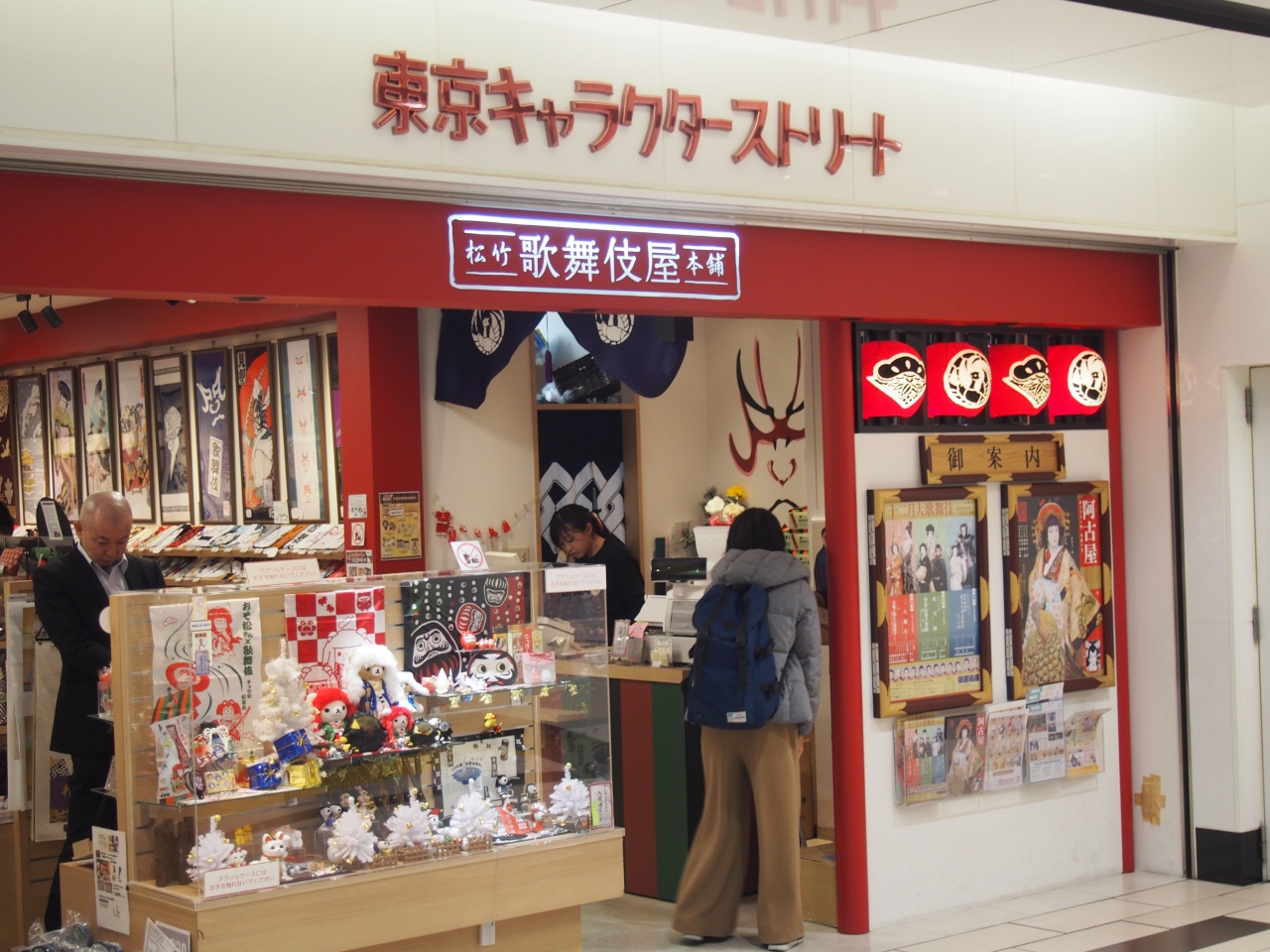 東京駅の地下街の一番街の東京キャラクターストリートに松竹歌舞伎屋本舗はあります。店内には歌舞伎グッズが豊富にあります。手作りの小物などの実演販売もあります。歌舞伎というと外国人観光客に人気があるようで、多くの外国人がお客として来ていました。またリラックマとコラボしたコーナーもあり、楽しい歌舞伎の一面がみられます。
