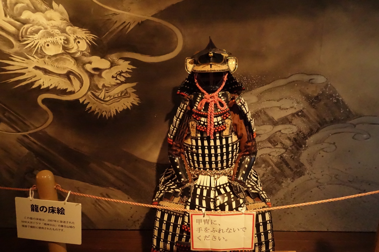 春日山城の麓にある施設でハコモノも立派ですが、内部では「越後上越 謙信公と春日山城展~戦国時代と今をつなぐもの~」という企画展を開催中でした。甲冑や大河ドラマで使われた床絵の展示など。謙信の生涯がタッチパネルで紹介されていたり、無料にしては面白かったです。