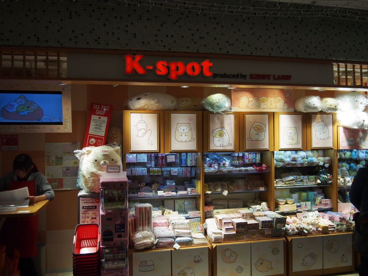 東京駅の地下街の一番街の東京キャラクターストリートにKスポット、キディランドのアンテナショップはあります。店は狭いですが、それぞれテーマをもって販売を行っているようです。訪れたときはすみっこぐらしというシリーズの新作などが販売されていました。猫のような狸のようなぬいぐるみがかわいいです。