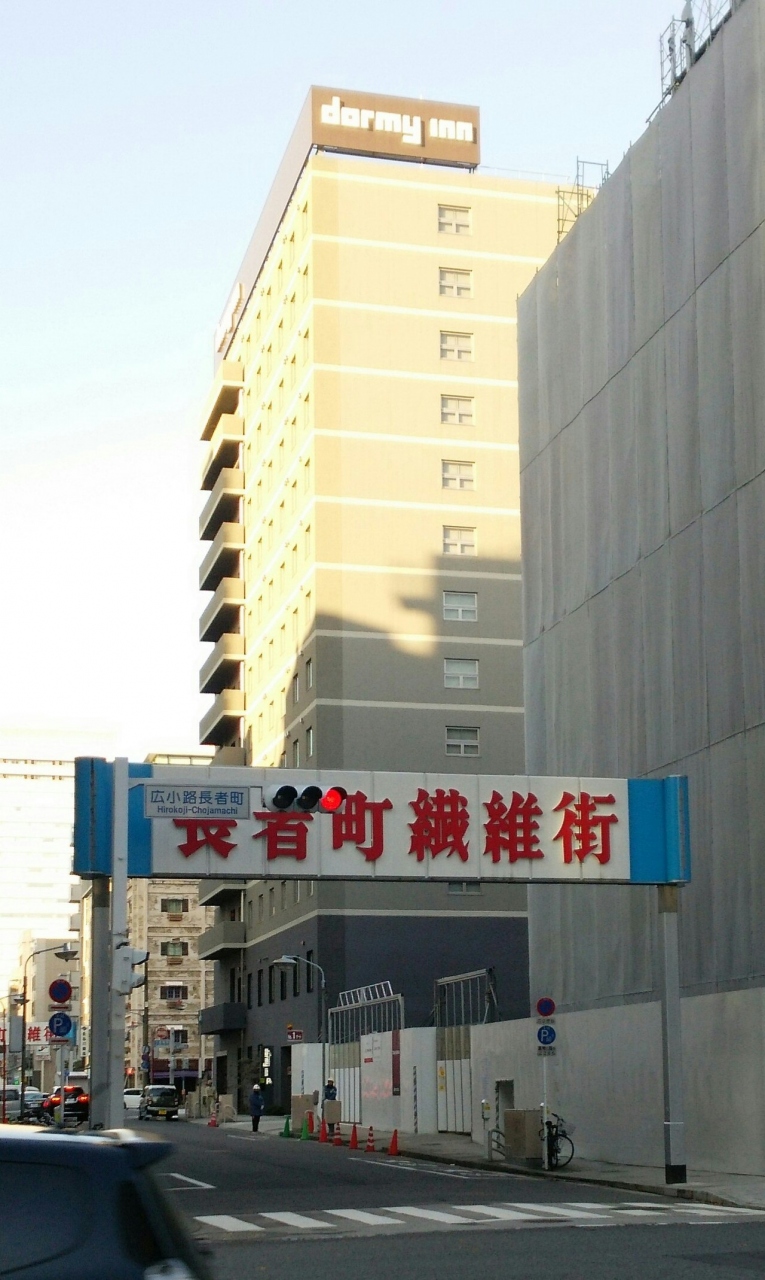 地下鉄伏見駅から徒歩数分、入口付近には「長者町繊維街」と書かれた大きな看板がありました。戦後全国有数の繊維問屋街として賑わいをみせていたようですが、現在はシャッターが閉まったお店も多く、どちらかというと地味で寂しい雰囲気でした。