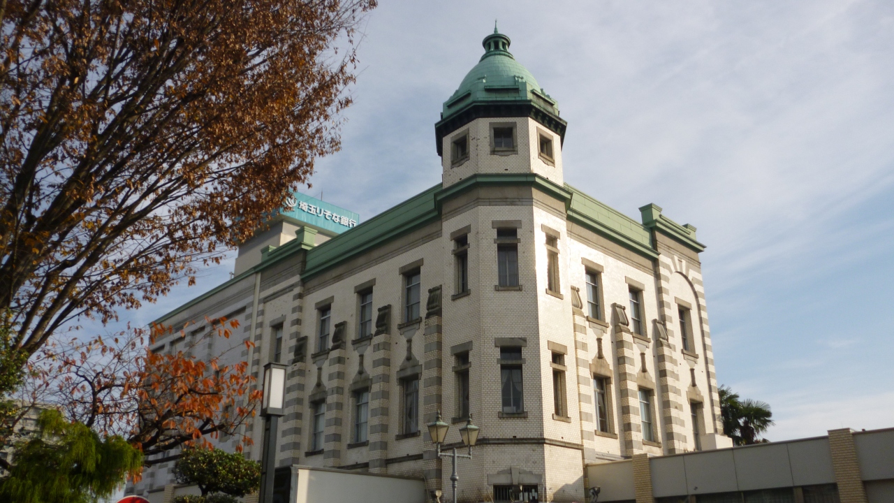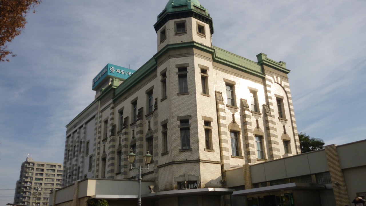 大正時代に建てられたネオ・ルネサンス様式の洋館です。白い壁と緑の屋根のコントラストが絶妙です。蔵の街小江戸川越では、特に目立ちますので、ランドマークとなっています。中を見てみたいのですが、現在も銀行として使われていますので、見学はNGです。