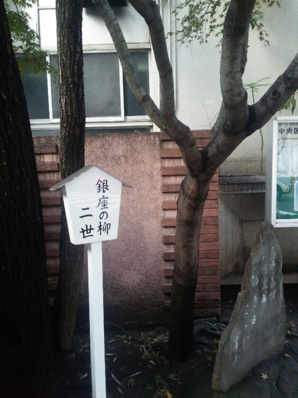 柳の木の脇には、「銀座の柳二世」との看板がありましたが、特に特徴のある柳の木という訳ではなかったです。また、「二世」とのことなので近くに「一世」があるのかとも思いましたが、特に解説などはなかったので分かりませんでした。