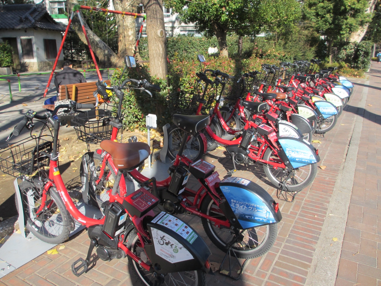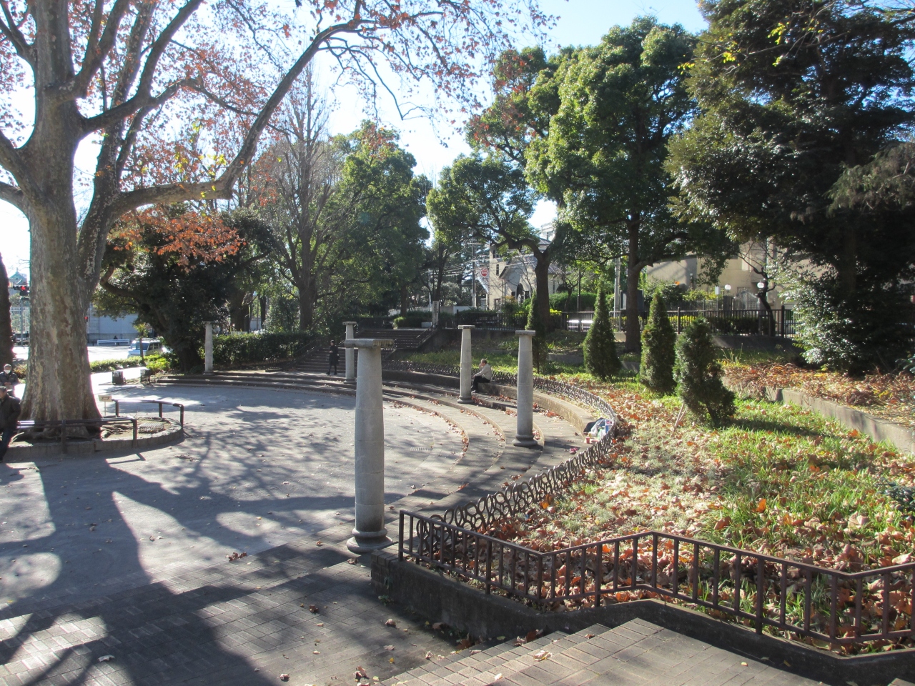 新宿通りの南にある寺院巡りをしていて出てきたところが迎賓館前で驚きました。マンションなどの住宅街と迎賓館の間にある狭い公園です。大木を中心に半円形の階段があり、芸術的な雰囲気の公園です。迎賓館へ行くために集まっている人たちがいて大人のための公園だと思いました。道路沿いに新宿区のサイクルポートがあり、観光客向けの休憩場所になっています。