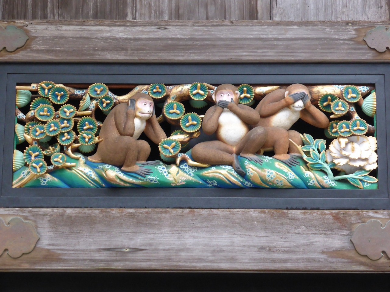 東照宮で一番有名な彫刻で悪い事は「見ざる、言わざる、聞かざる」を表現したもので、三猿と呼ばれています。行った時は修復中で、この三猿はレプリカだったのですが、他の7枚が写真だったのには驚きました。どうせなら全てレプリカでもいいから見たかったです。
