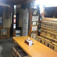 - 民芸品の山の中で食べている感じ。好みが分かれますね。