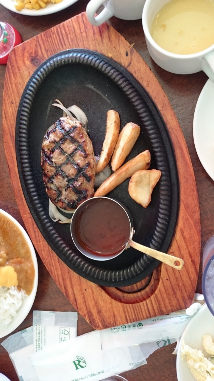 週末のランチに嫁ちゃんと子ども二人とお邪魔しました。雑誌のクーポン券で15%オフを頂きました。ハンバーグをオーダー、おいしかったですよ。サラダバーにカレーやソフトクリームが入っているのもうれしいですね。
