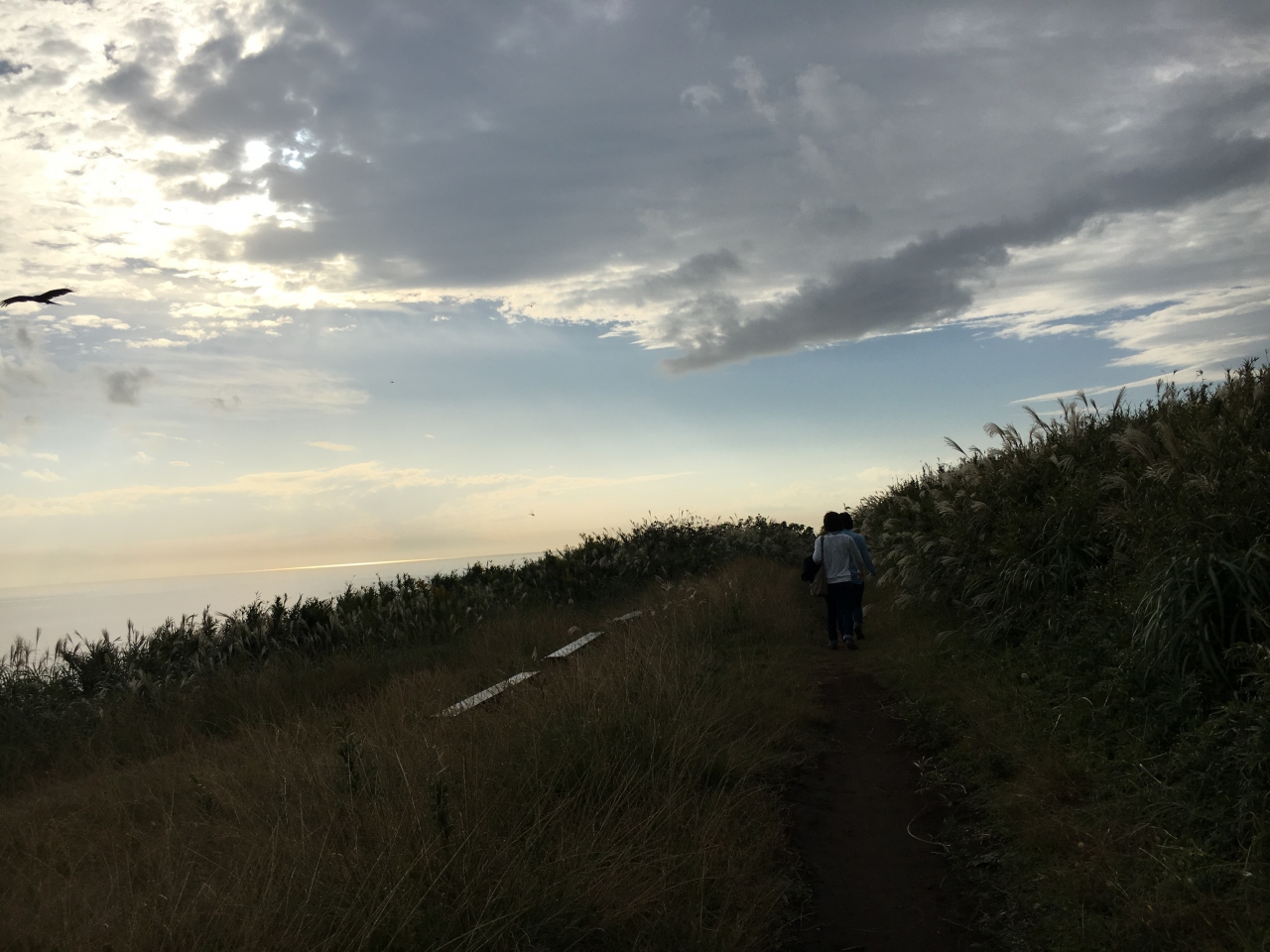 城ヶ島から見渡す海の風景は、黒々とした岩肌が見えていて独特な感じでした。城ヶ島のホテルから灯台に向かうハイキングコースを歩きました。うっそうと茂った草の中を結構長い距離、たくさん歩きました。もっと近道もあったみたいでしたが、いい運動になりました。