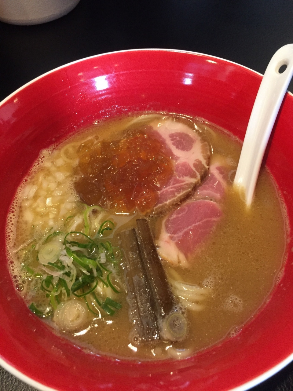 麺の上にはジュレがのっていて、味は魚介、かなり濃厚な味です。