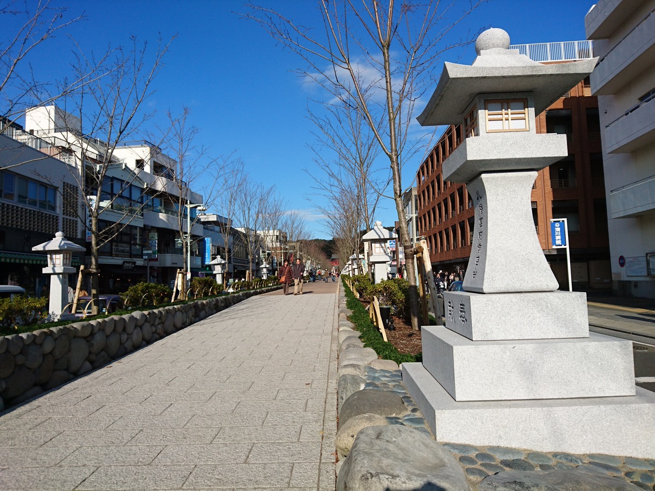段葛は鎌倉駅から鶴岡八幡宮の3の鳥居まで続く通りです。石灯籠や桜の並木に囲まれています。