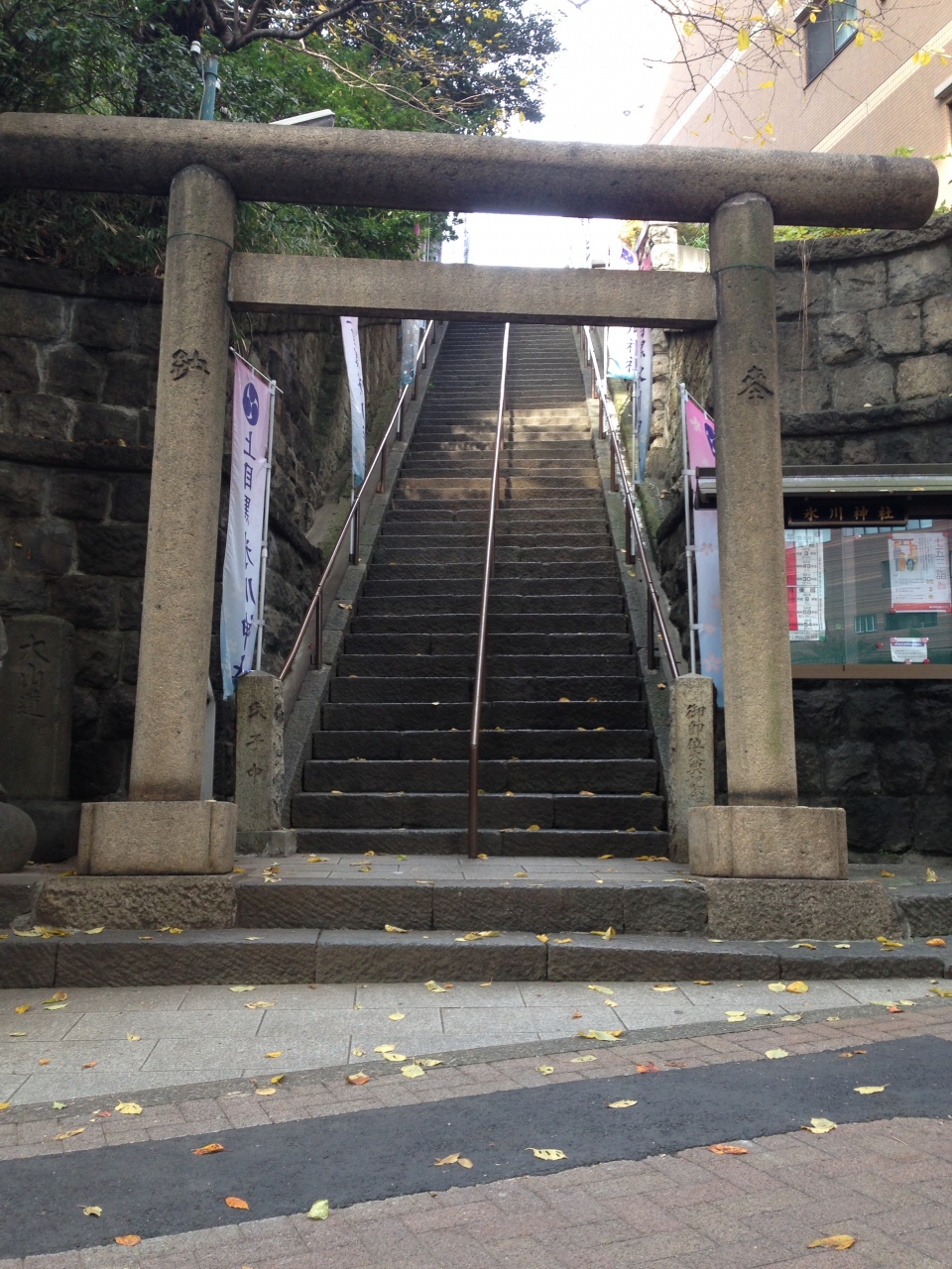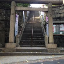 以前はそれほど急ではなかったようだが、道路が広がったことで、階段を作り直し、急になったらしい。