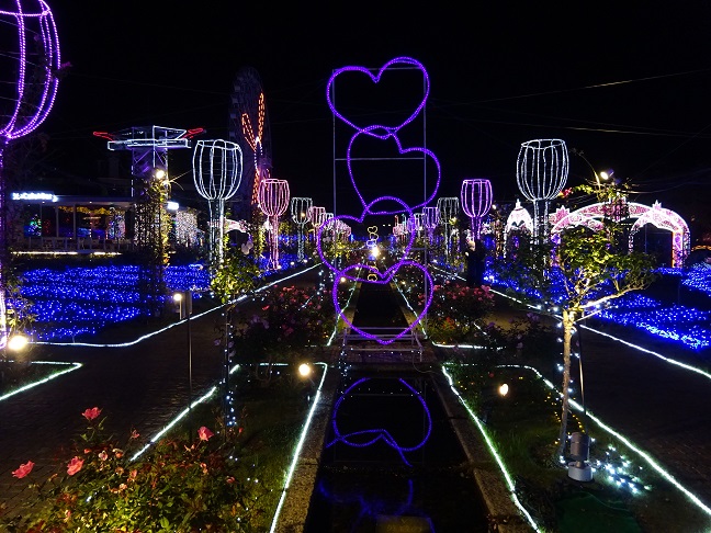 夜のイルミネーションはすごい、でも商魂たくましい?