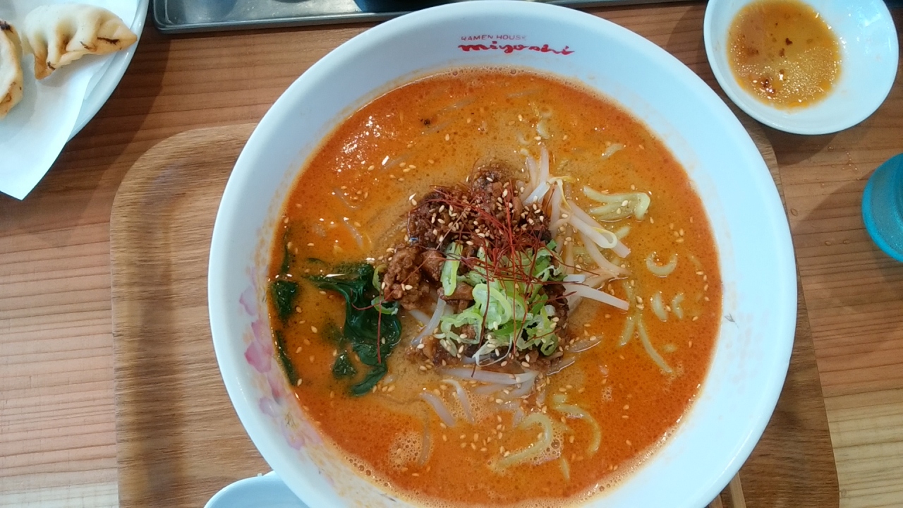 「餃子とラーメンの旨い店 みよし」に店名が変わりリニューアルされています。土曜日の昼だったからか駐車場がほぼ一杯でした。坦々麺、揚げ餃子、焼き餃子、たんめんをいただきましたが、どれもとても美味しかったです。