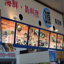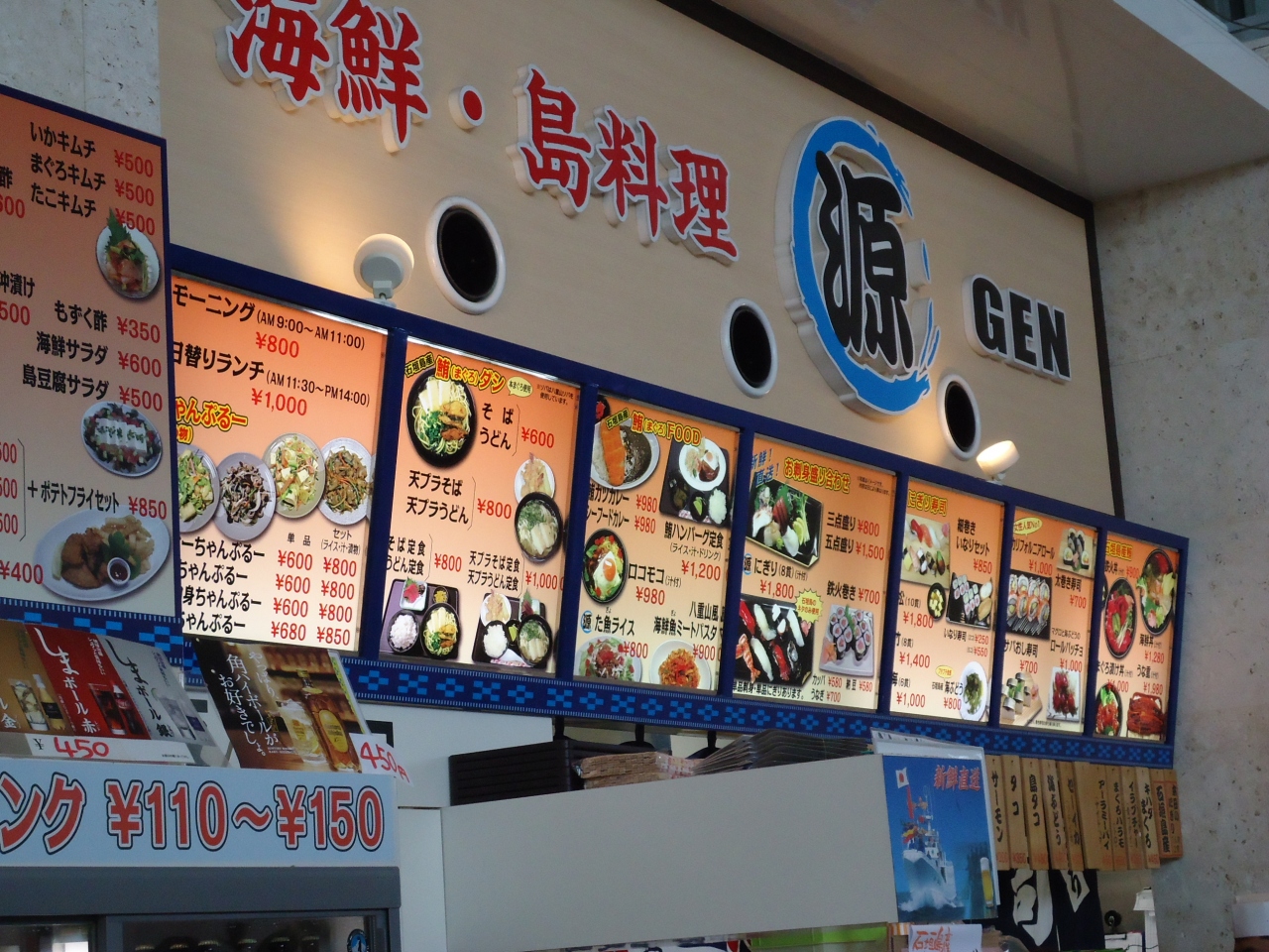 空港のフードコートの一つです。市内にもあるお店の空港店のようで、海鮮をあつかっているとのことで、ビールと島タコのにぎりにマグロと海ぶどうのロールパッチョをオーダー。海ブドウをマグロで巻くとはおもっていなかったのですが、食べてみるととてもおいしかったです。ただ空港なのでちょっと値段が高いかなぁと思いました。