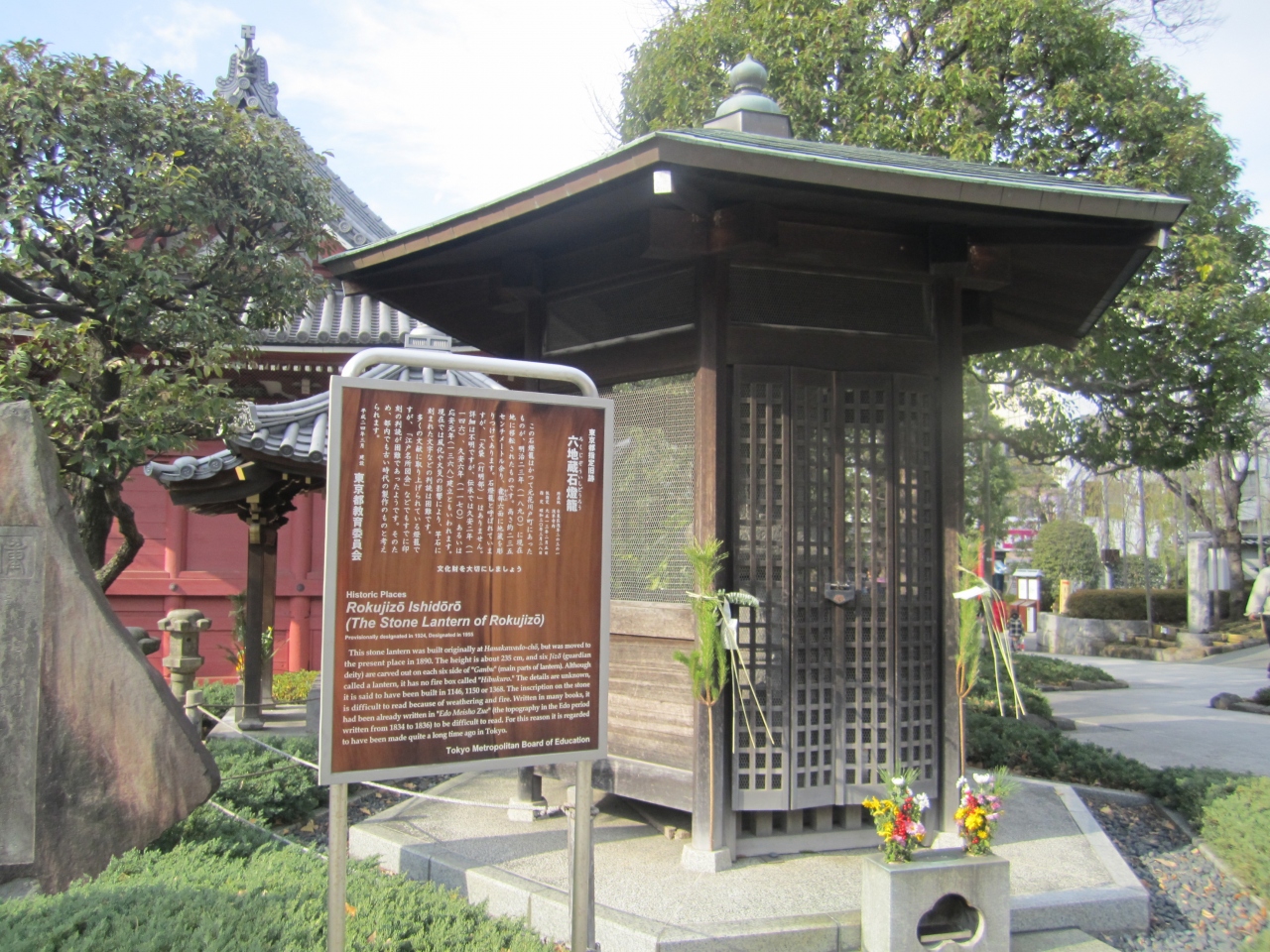 六地蔵石灯籠は、東京都台東区浅草二丁目、浅草寺の西側の奥のほうにある影向堂のすぐそばにありました。都内に現存している石燈籠の中でも、最も古い時代につくられたものの一つであるといわれているそうです。大切に守られて残っていてよかったね~と声をかけたくなる石燈籠でした。