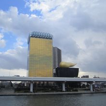 アサヒビール吾妻橋ビルは、東京都墨田区吾妻橋一丁目にあるビルです。首都高速からもよく見えて、金色のオブジェが有名で、すっかりこのあたりの名所になったかんじがあります。ビルにはビールを飲めるレストランが入っています。
