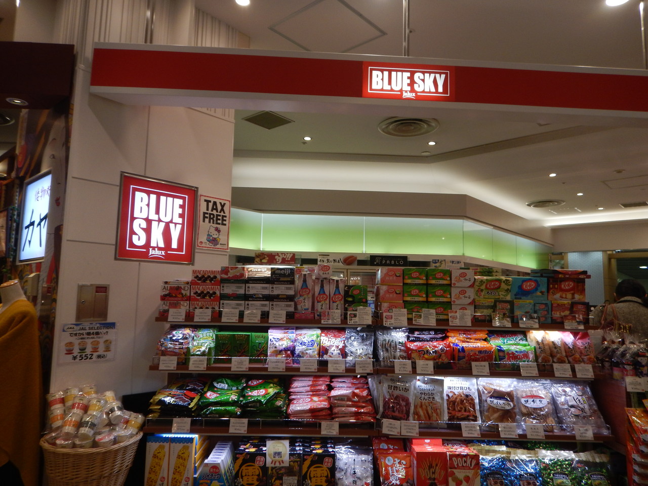 第二ターミナル4階のエアポートモールにありました。店頭には、以前JALの機内で食べて美味しかった「うどんですかい」など、ミニサイズのカップ麺「ですかい麺」が4個セットで550円位で売っていました。懐かしくて自宅へのお土産に買って帰ったら家族に喜ばれました。他にはキットカットの種類が多かったです。特に抹茶味は外国人にも人気があると聞いたことがありますが、たくさん売っていました。