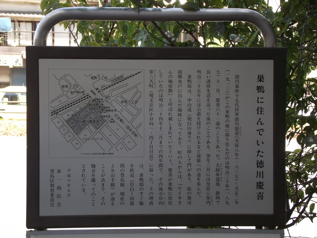 大政奉還後、静岡などで謹慎生活を送っていた徳川幕府最後の第15代将軍慶喜公が、ここ巣鴨に移り住んだのは、明治30 (1897) 年の慶喜公が61歳の時だった とのことです。