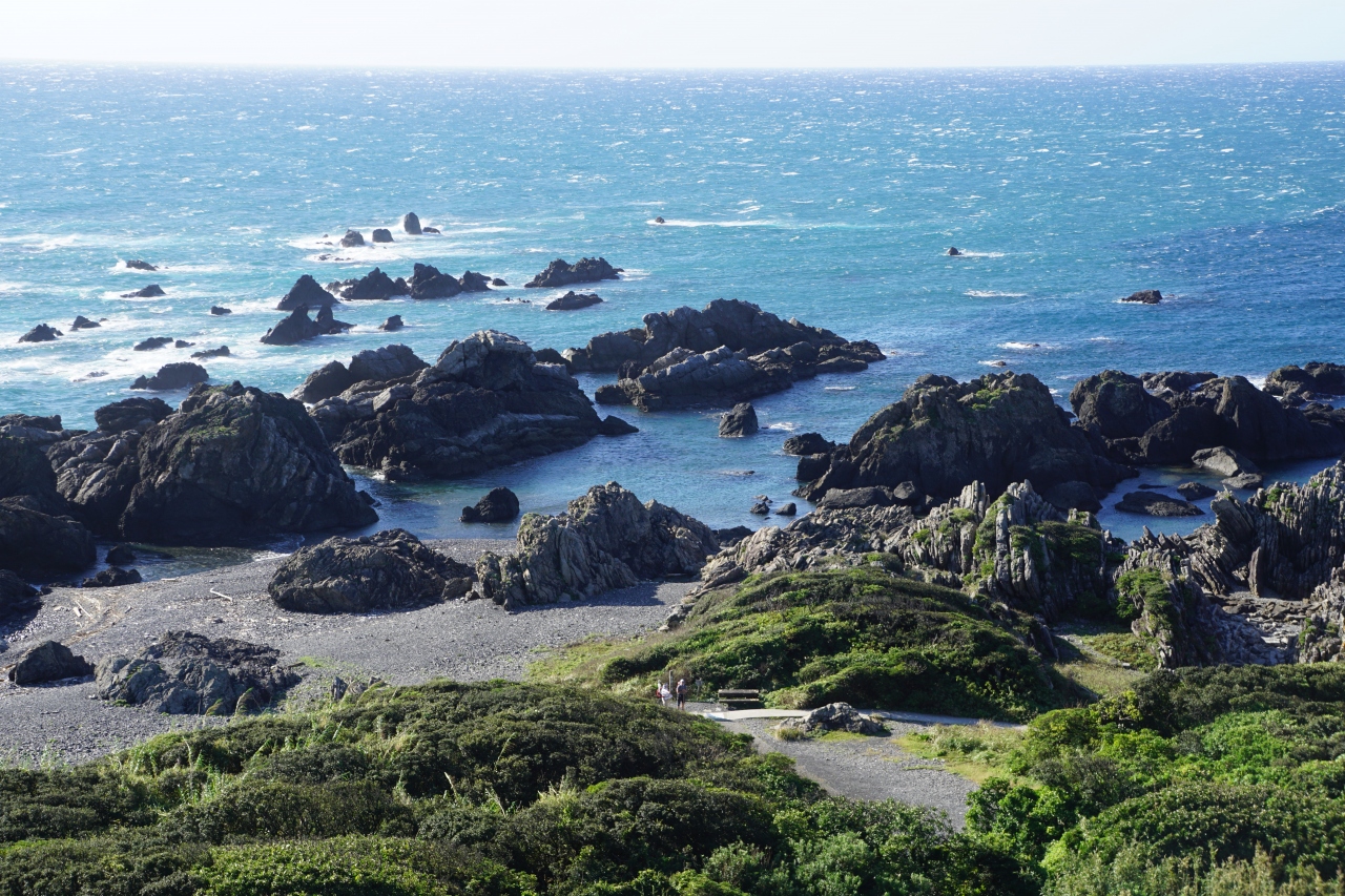中岡慎太郎像の裏側から登り口があって、少し登ったところが展望台。さほど登った感じはないのですが、ここからだと灌頂ケ浜の辺り一帯がちょうど目の前に見える。太平洋に向かって突き出した室戸岬のロケーションがよく分かります。ちょっとのことなので、是非、登ってみてください。