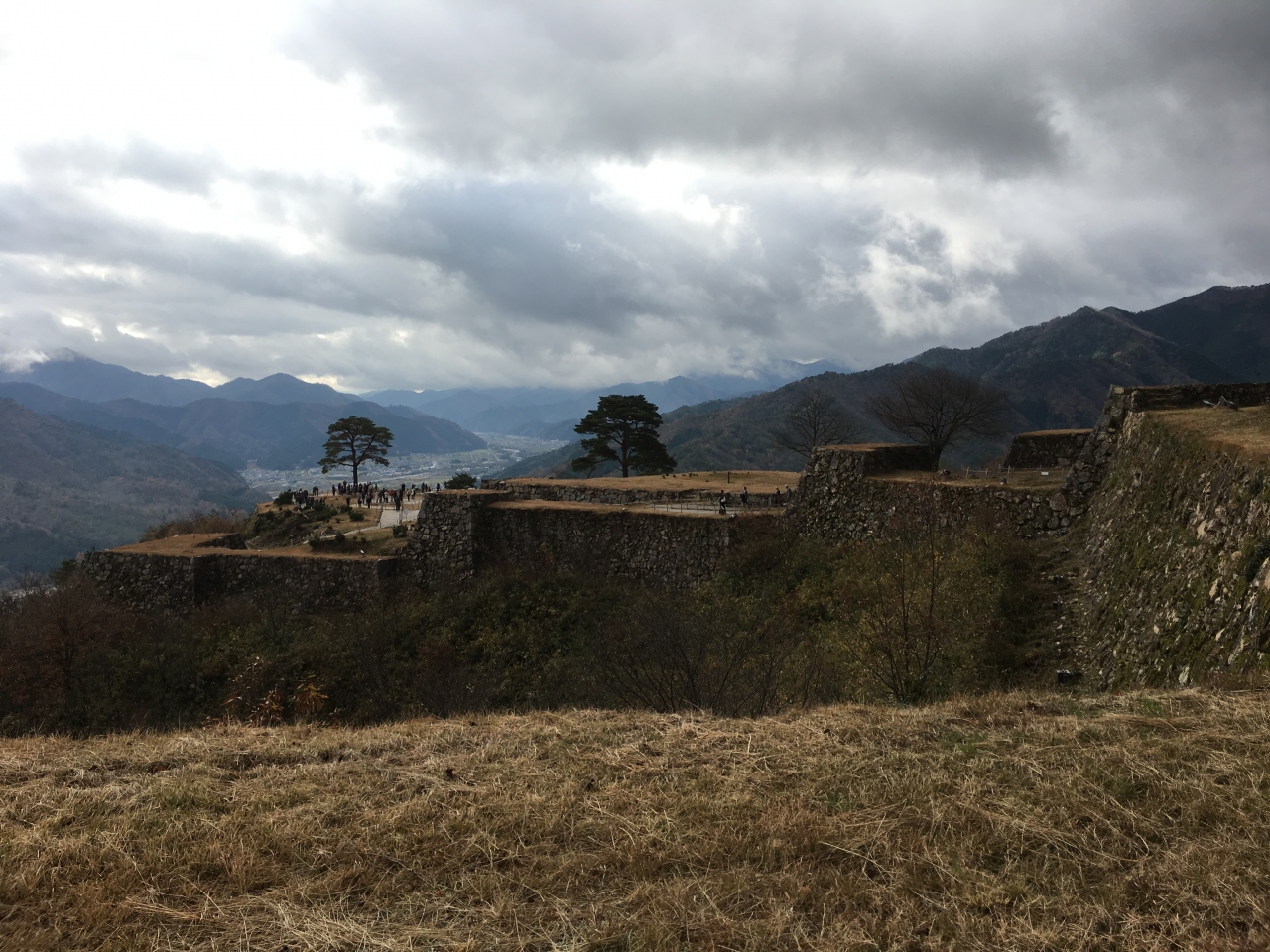 天空バスに乗り、さらに徒歩約1Km。最後の50mは、心臓破りの急な坂道です。竹田城はさらに山の上。さすがに景色が素晴らしい。紅葉はほとんど終わっていましたが、桜の時期でも素晴らしい景色が眺められそうです。