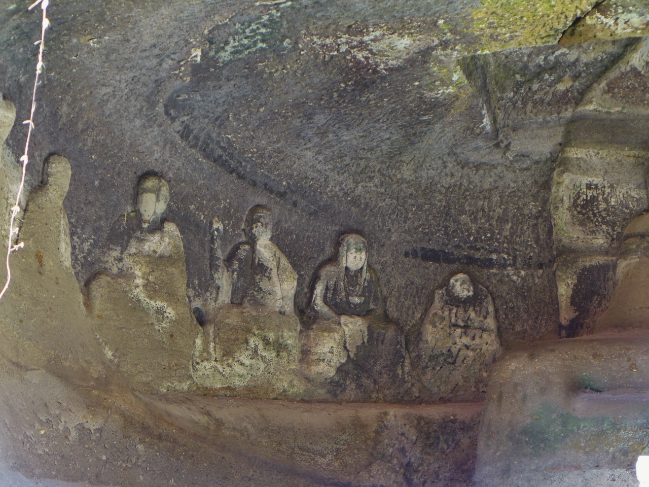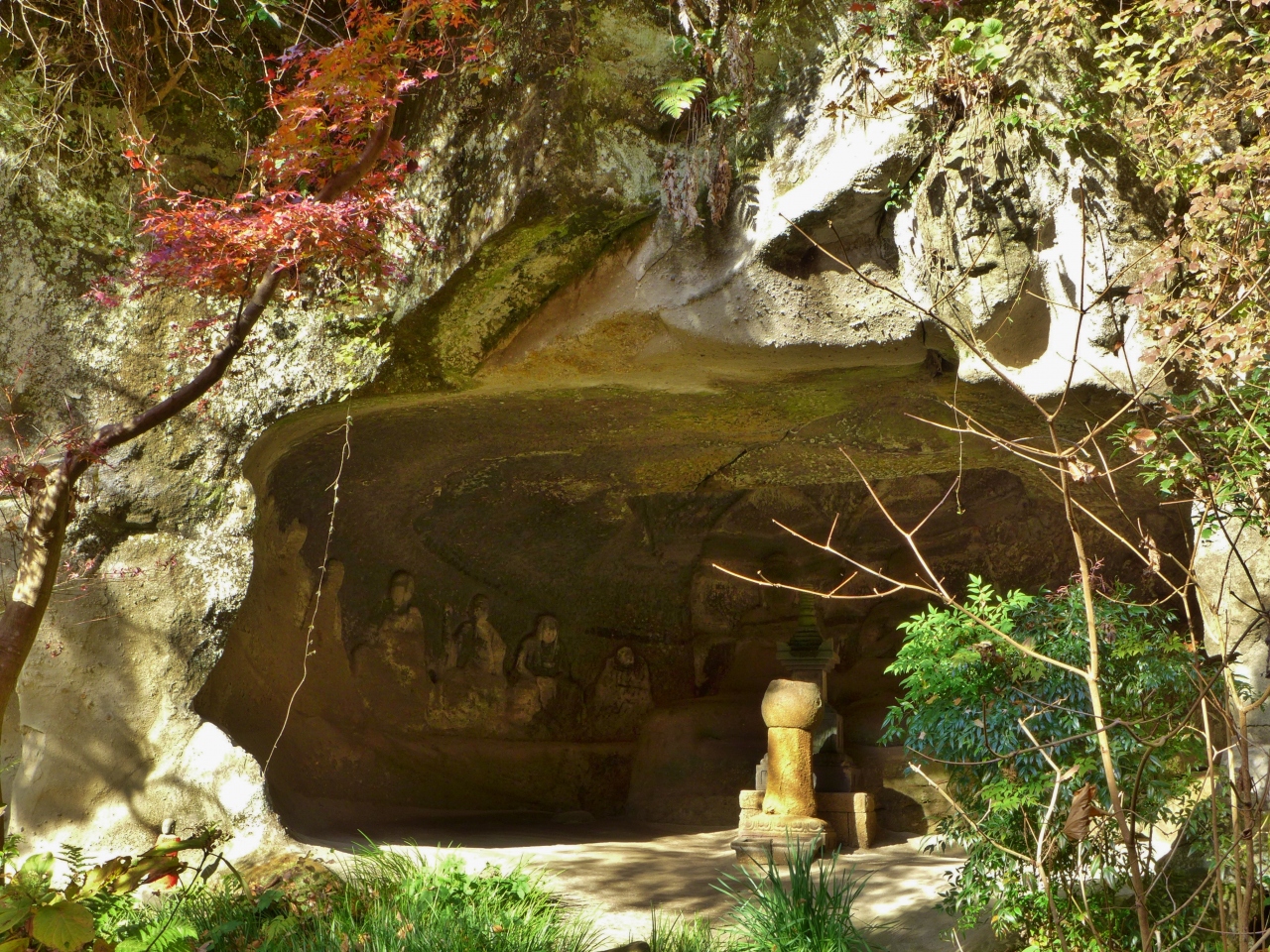 やぐらの中へは入れませんでしたが、中央には宝篋印塔があって、その奥に釈迦如来と多宝如来、十六羅漢像を見ることができました。