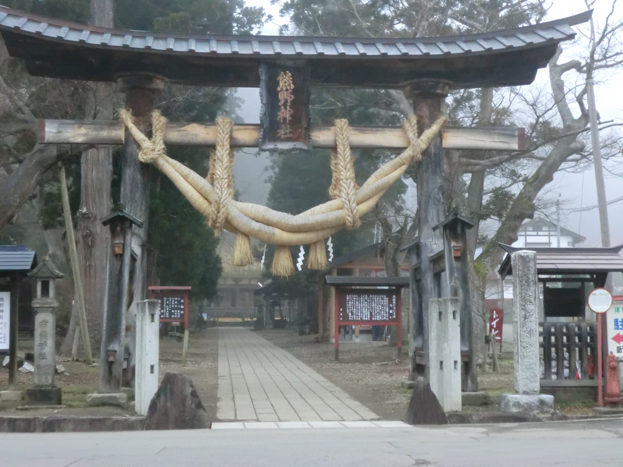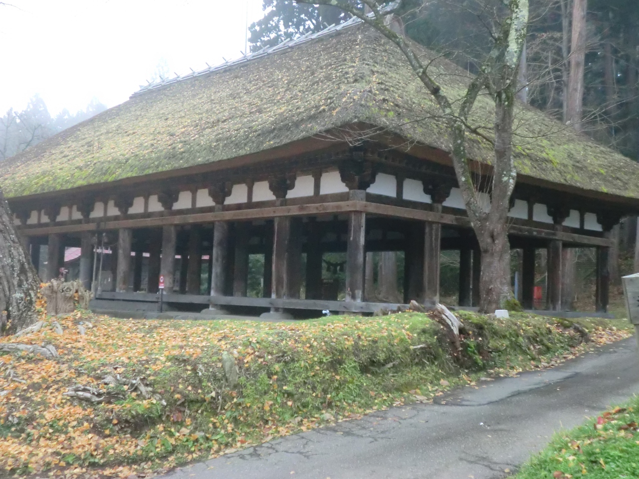 随分前に来たことがあり、今回で2度目の訪問です。通称、長床と言われていますが、新宮熊野神社というのだそうです。平安時代のこの建物だけが遺ったそうです。鳥居のしめ縄の太いのに見とれていると、参道正面にある長床(拝殿)は壁が全くなく、太い柱のみが目に入ります。当時のこの地方の勢力に思いを馳せていました。