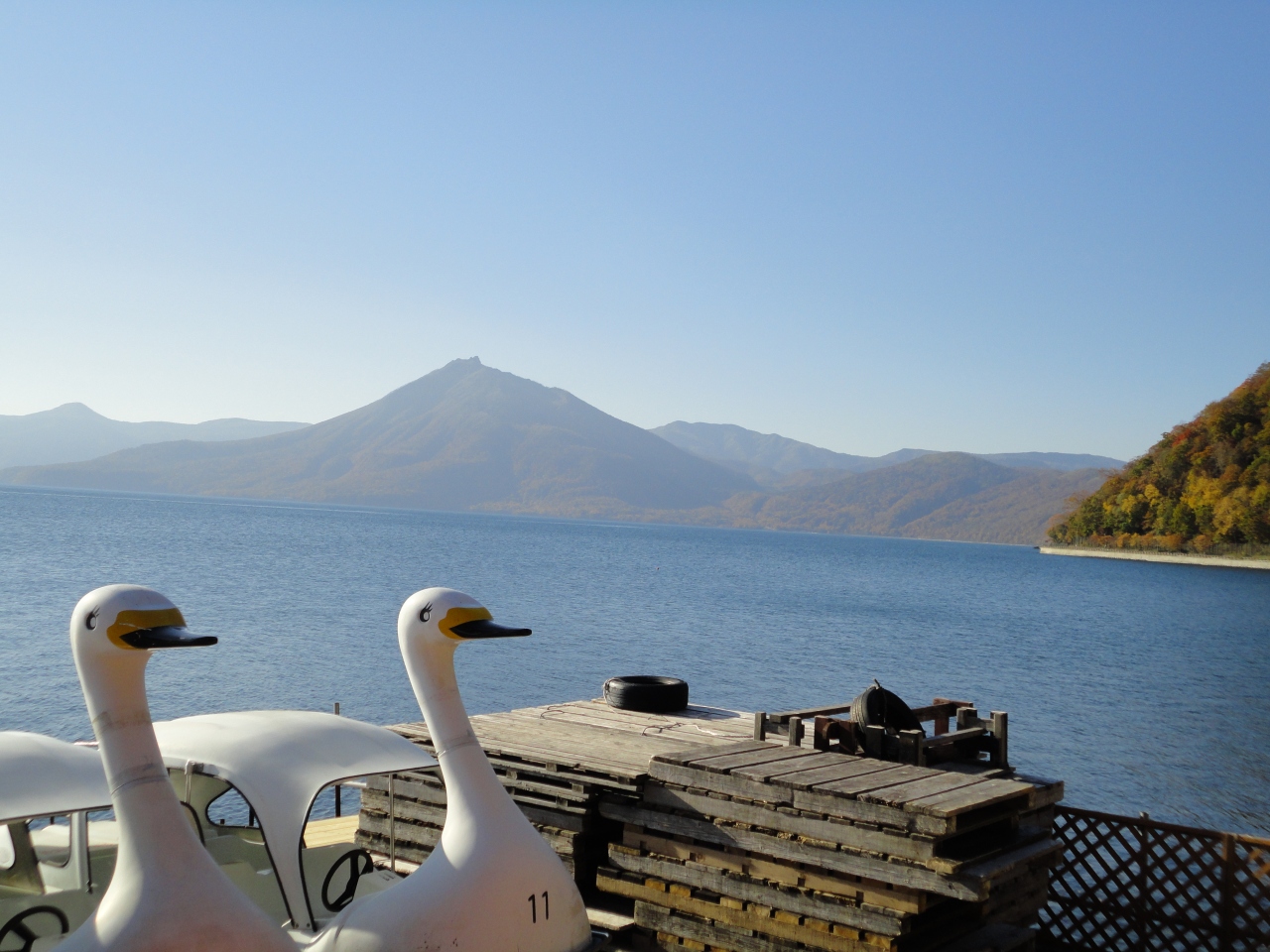 ツアーで北海道を旅行し支笏湖を訪れました。支笏湖へ向かうバスからの景色は紅葉がとてもすばらしかったです。台風が3回上陸した割には葉がそれほど落ちていなくてとてもきれいでした。駐車場から支笏湖までは2・3分ほど歩きます。昼を少し過ぎた頃で支笏湖は逆光のため正面からの撮影は厳しかったです。湖の周りの山の紅葉景色は今がちょうど見頃で写真撮影には最適だったです。