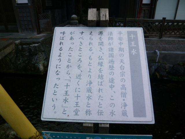 この水流も古く平安中期に天台僧浄蔵によって開かれたとのことで、この近くに十王堂があったことから十王水と呼ばれるようになったようです。