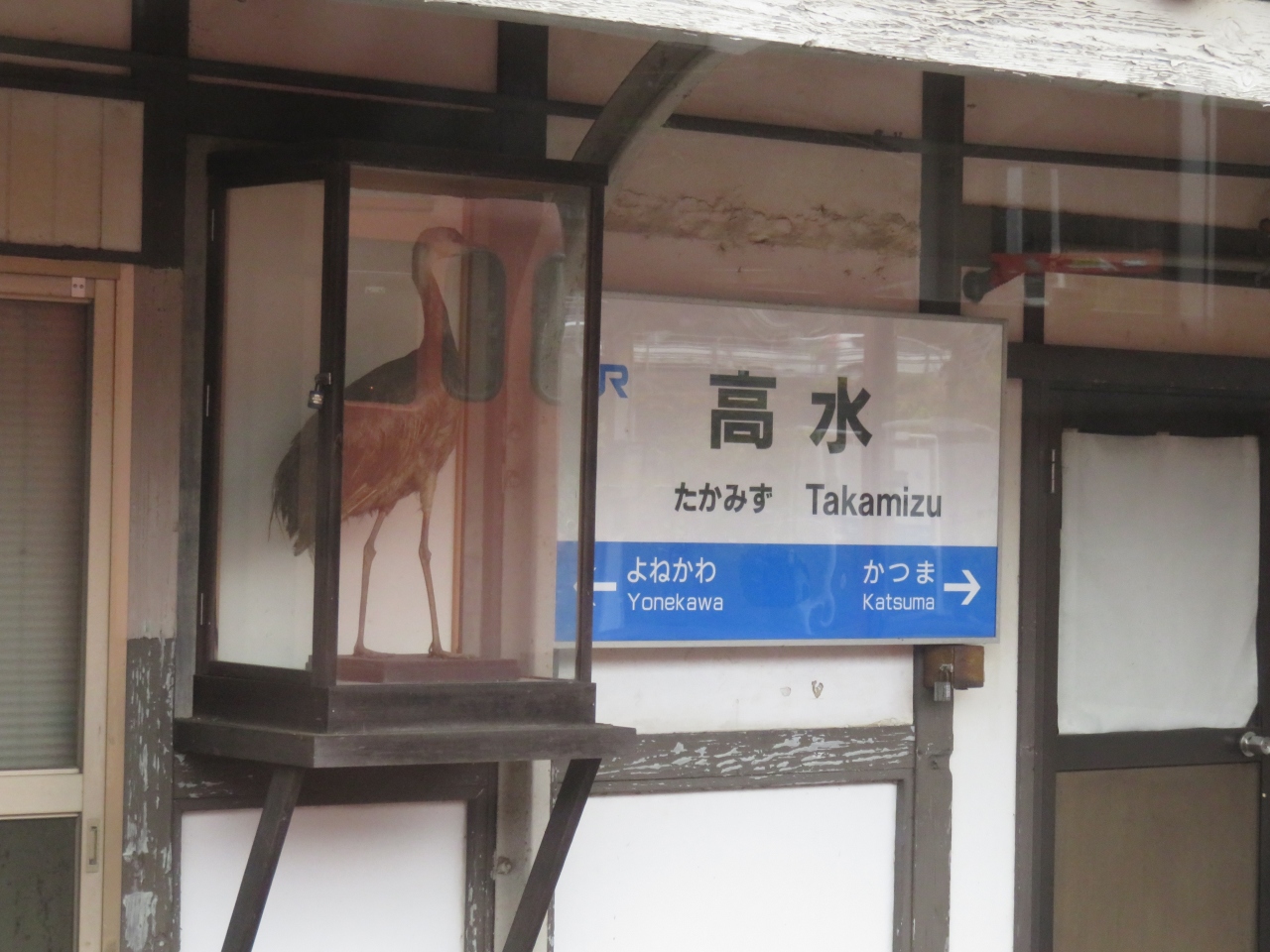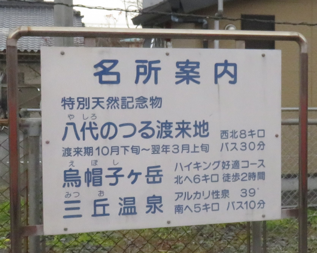 ただし、途中の高水まで来ると、子供のころ温泉に来たことがあるのを思い出した。八代の鶴渡来地だと駅の掲示板にあるが、温泉の名前は三丘(みつお)温泉とある。これらは記憶にあった。この駅には降り立ったことがあるのだ。懐かしさで写真を撮った。