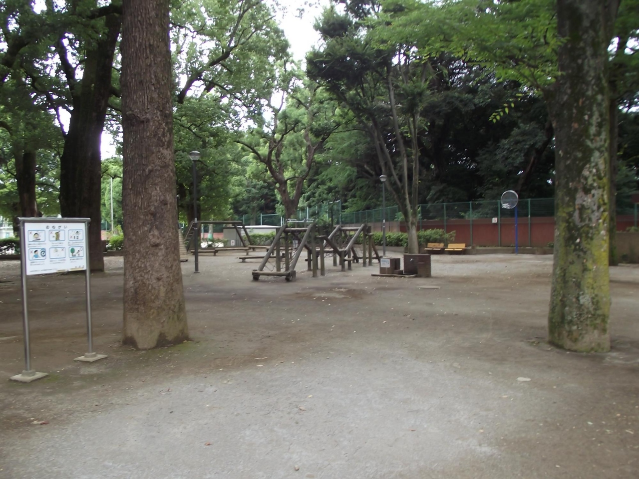 かなり広いところに、バスケットゴールやアスレチック遊具、ブランコ、すべり台、鉄棒などとともにベンチも整っています。