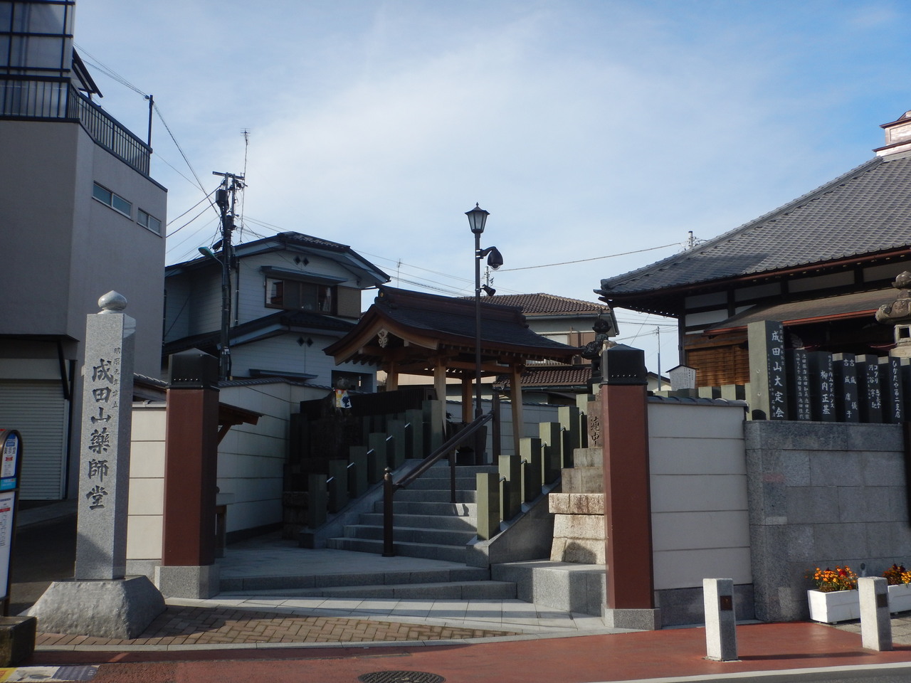 成田山薬師堂は成田駅から成田山新勝寺に向かう途中にあり、米屋本店の少し先の左側にありました。1655年本堂として建立されましたが、1855年に表参道の現在地に移され、最近では2013年(平成25年)に修復されました。徳川光圀公や初代市川団十郎が参詣した成田山に現存する最古のお堂だそうで、成田市指定有形文化財になっています。成田山新勝寺の方は賑わっていましたが、こちらの薬師堂には誰もいなくて寂しい感じでした。