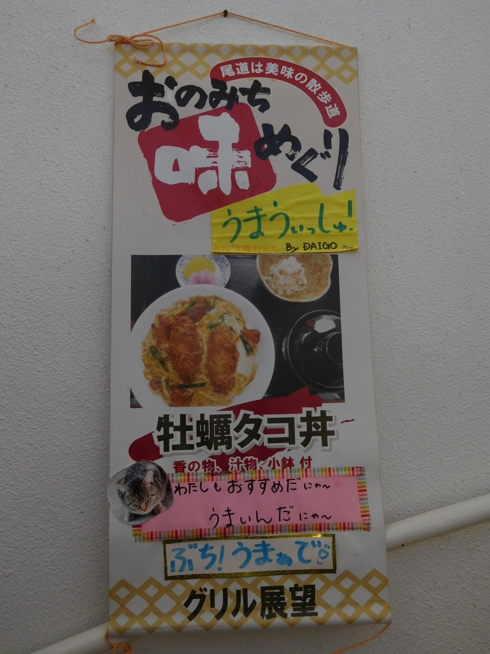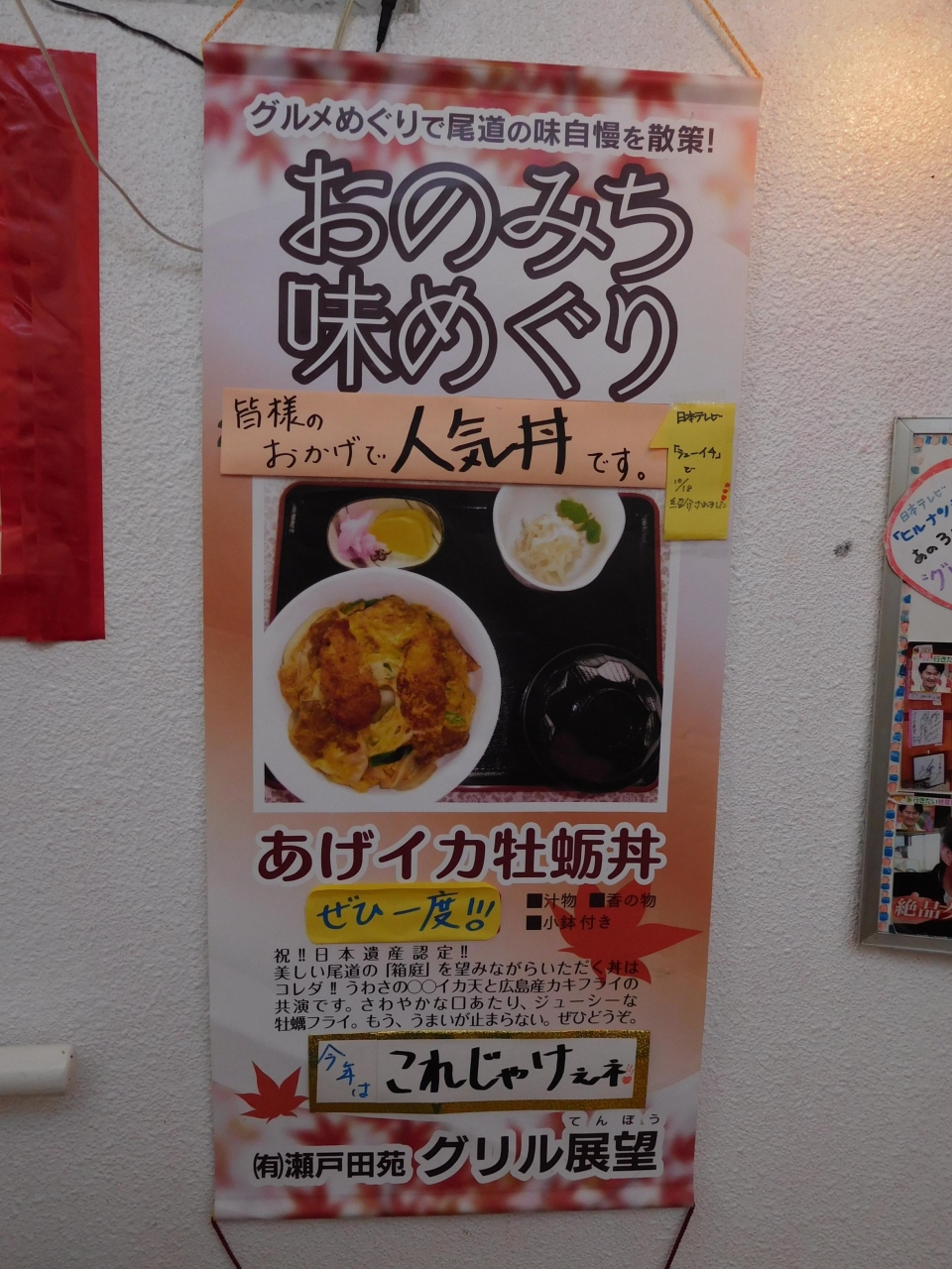 千光寺公園の展望台にお店があり、牡蠣やイカ、タコを使った丼が食べられます。
