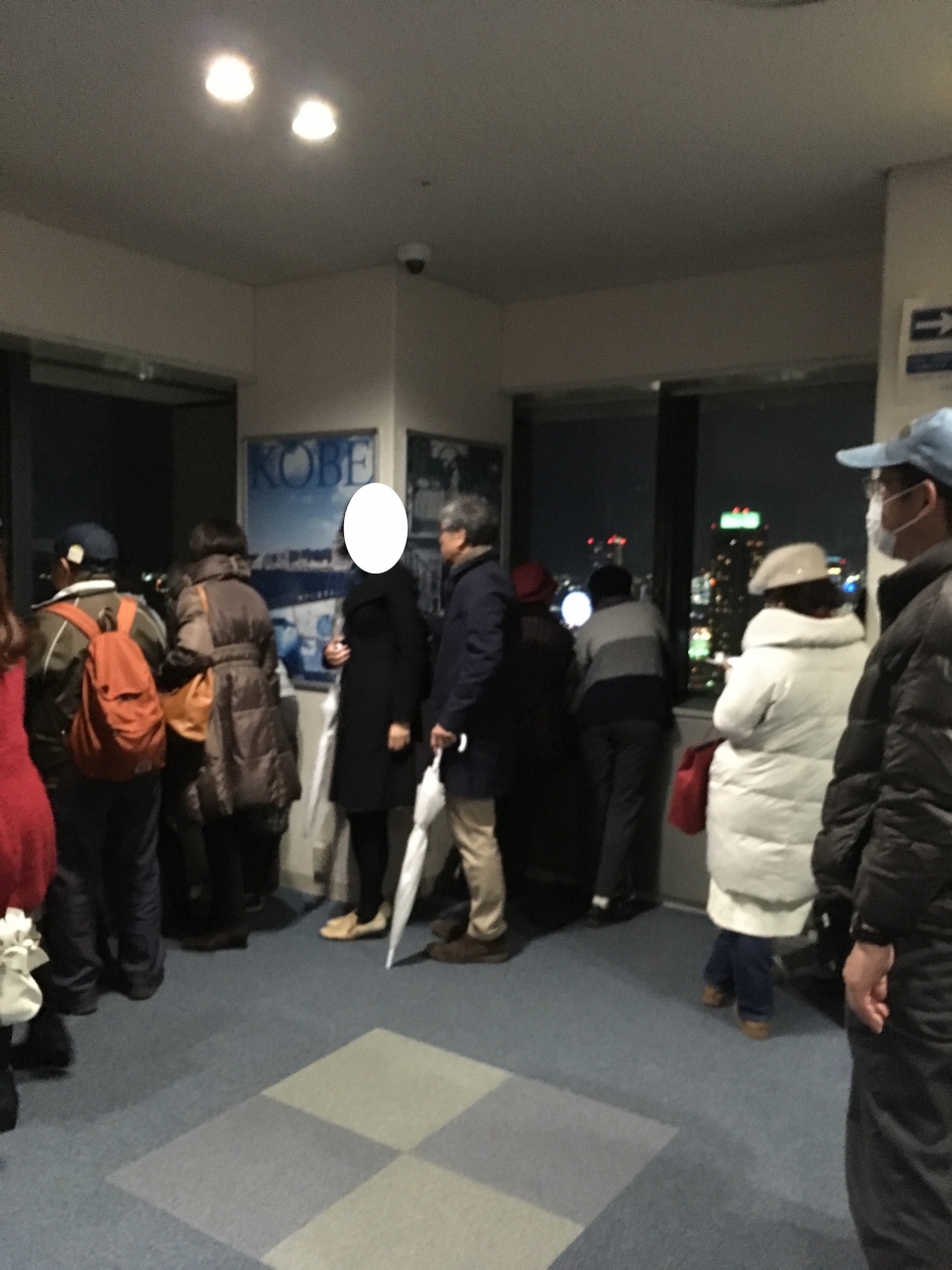 神戸市役所の上層階にある展望台です。神戸にはあまり高層ビルもないことから、普段から夜景がきれいなことでも隠れた人気を誇る場所ですが、ルミナリエの夜には会場よりもかなり空いていますし、なかなかきれいに見えるのでおすすめです。