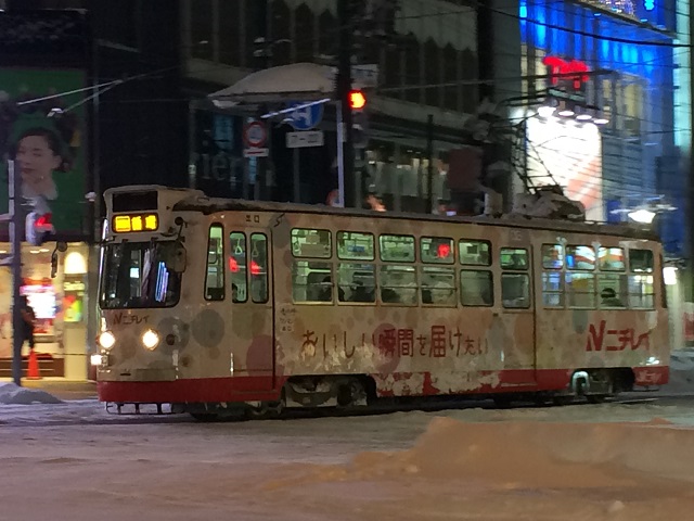 札幌の市街地を走る路面電車です。以前は大通からすすきの迄でしたが最近環状線になったそうです。