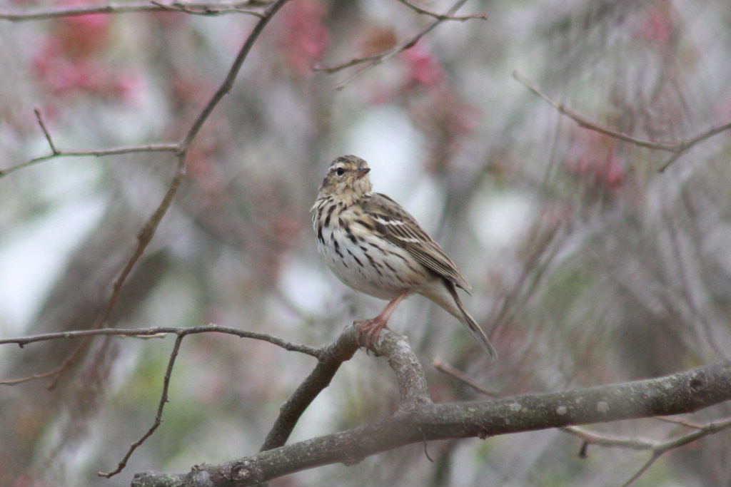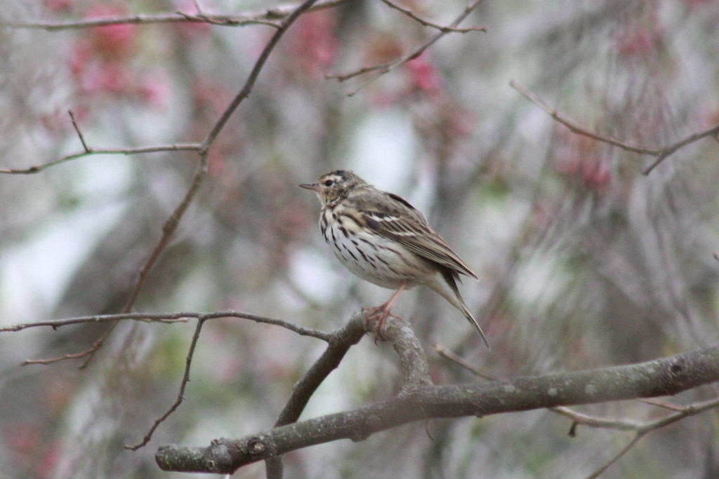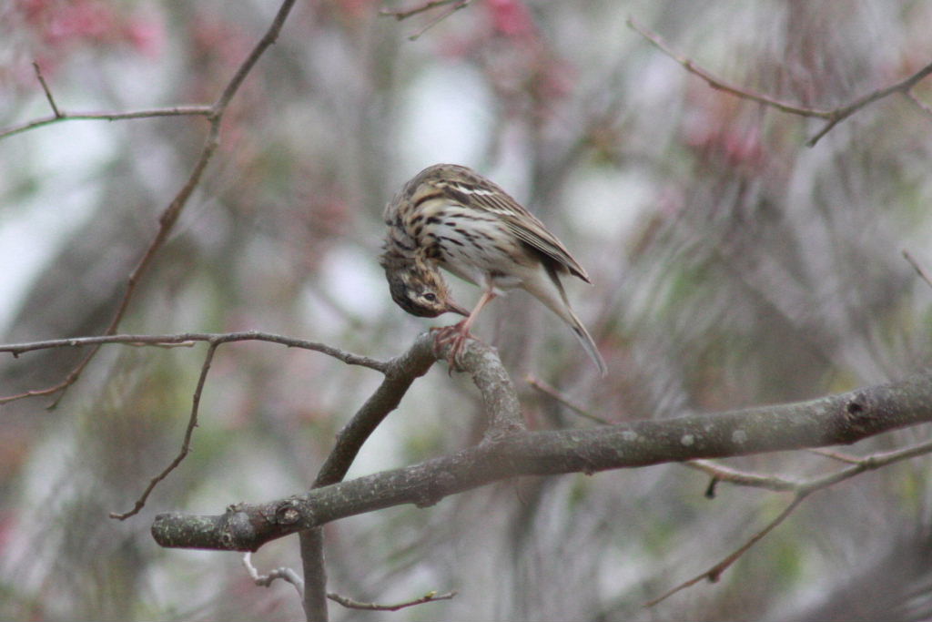 ビンズイ(便追)は、スズメ目セキレイ科の野鳥で、漂鳥または夏鳥として四国以北の山地・亜高山帯の明るい林で繁殖します。決して珍鳥の部類では無く、探鳥会などでも時々見られますが、潮来市内ではそれほど多くは見かけません。今回、桜の花見をしていて、ビンズイを見る事ができましたが、夏鳥として繁殖地に向かう途中に立ち寄ったのかもしれません。