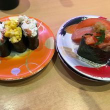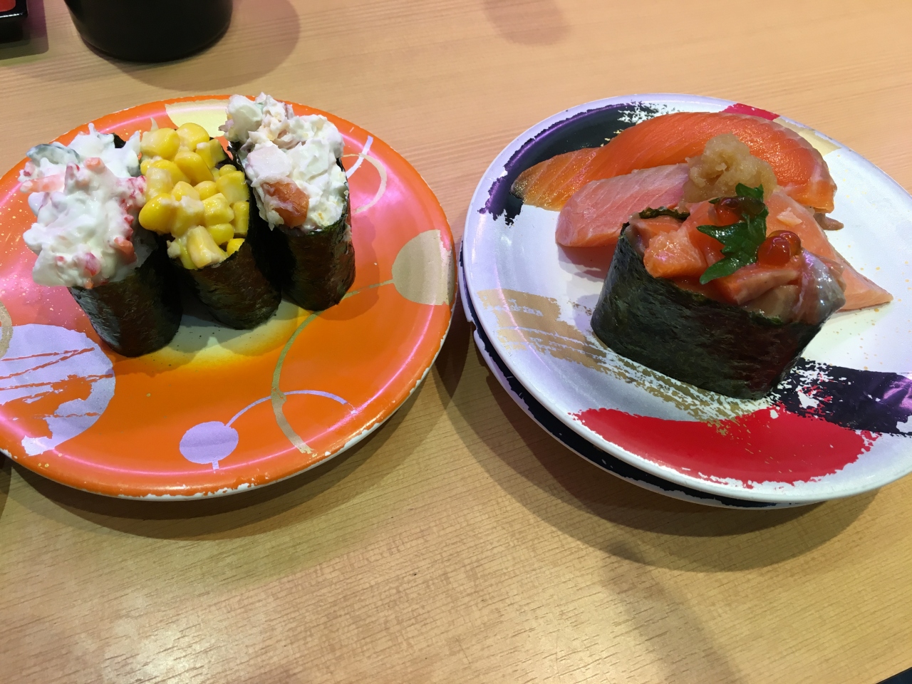 さしぶりに川崎に行きまして、せっかくのチャンスでラゾーナの回転寿司を利用。カンター席で座っていて、三つコンビのやつが多くて、サラダ、マグロ、海老などの三種ものを注文し、どれでも新鮮で、最後はサーモン炙りで香ばしくて最高に美味しかったです。