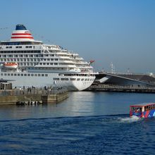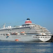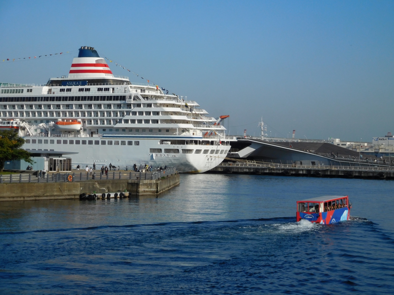 横浜港が母港の、日本最大のクルーズ客船です。大さん橋国際客船ターミナルに寄港している際に見に行きました。マンション位の高さのある船が、海に浮かんでいるのが不思議な位、とても大きくて迫力がありました。船首から船尾まで、満船飾が施されていました。穏やかな秋の日に、のんびりと眺める事が出来て良かったです。