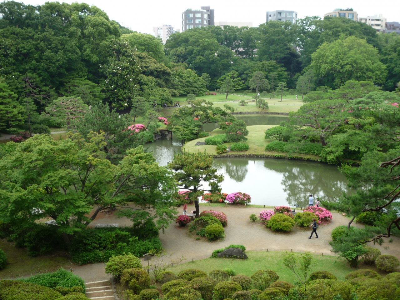 ここから六義園の大泉水周辺の景色を見渡せる
