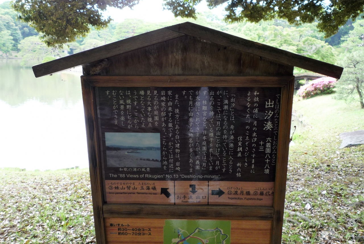 出汐の湊は六義園の大泉水(大きな池)にある円い湾です。