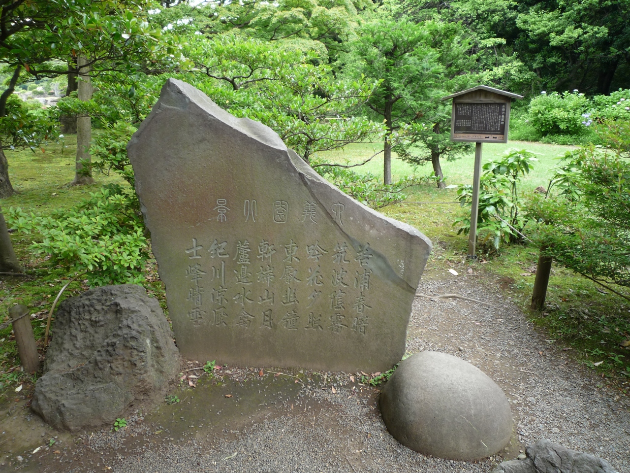 前面には霊元上皇が詠んだ六義園八景、