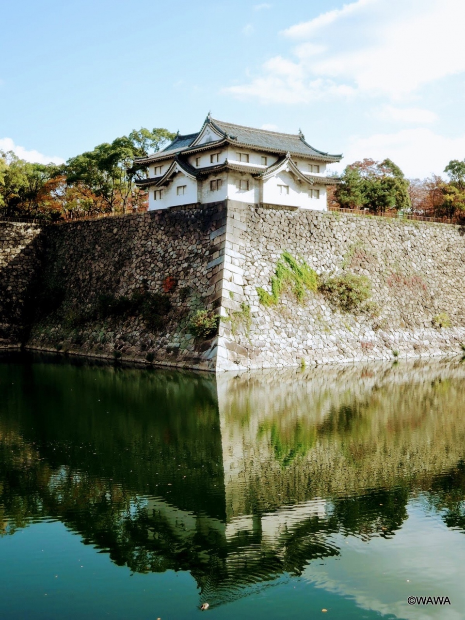 大阪城 乾櫓 は、大阪城天守閣から北西(戌亥)方向、西外堀と北外堀の両方に面して立つL字型の建物です。