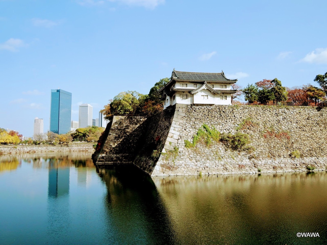 ただ、大阪城北東部の中洲に開発された大阪ビジネスパークの細長いビルが写り込むことが残念でした。