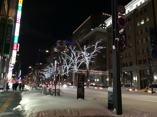 札幌駅前から大通公園、すすきの方面へつながっている広い道です。