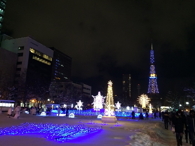 テレビ塔周辺と大通公園を散策しながらきれいなイルミネーションを堪能しました。