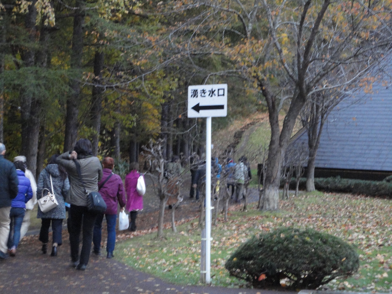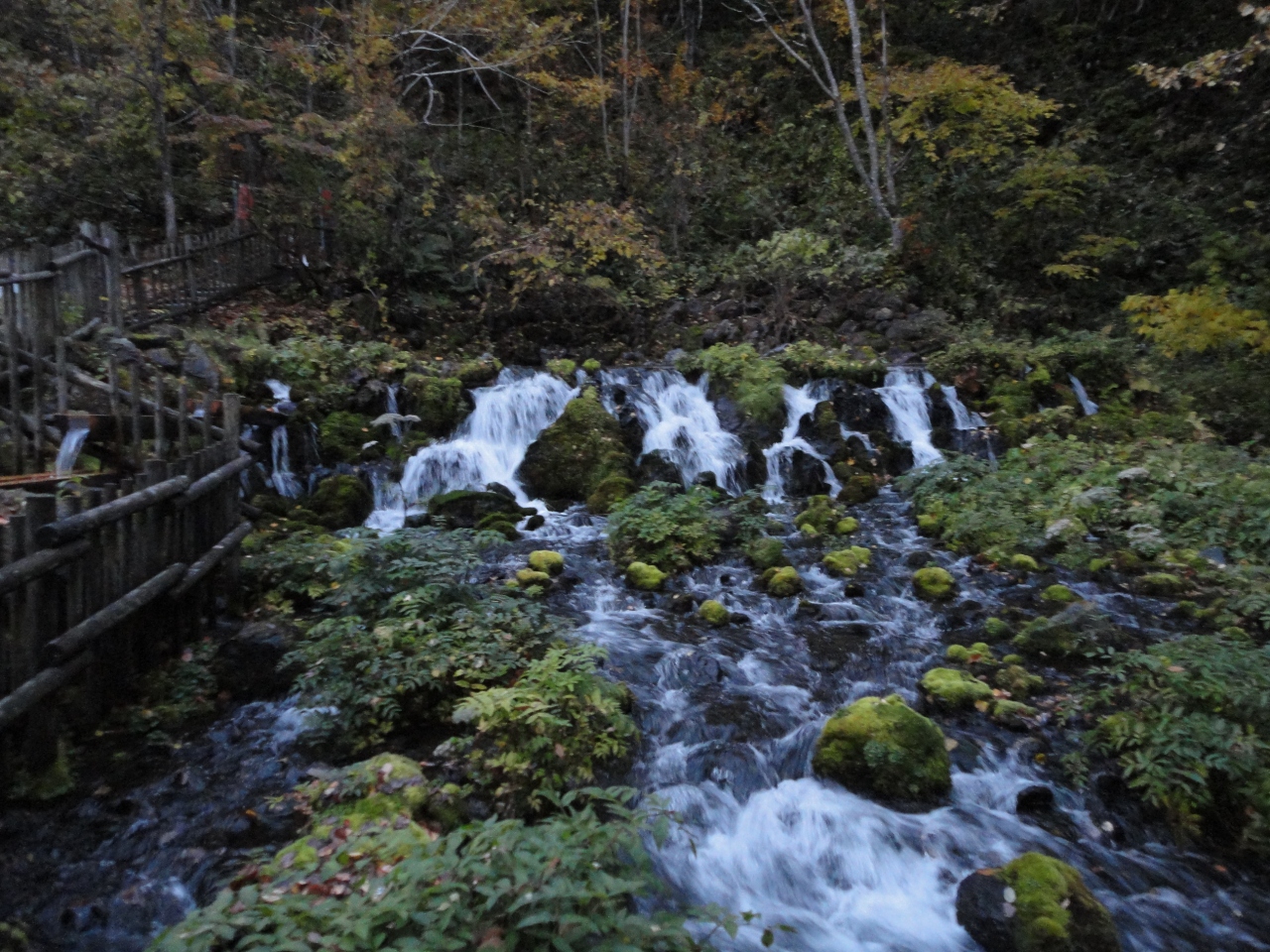 北海道旅行の2日目の最後の観光としてふきだし公園を訪れました。駐車場から湧き水のある所まで歩いて3分くらいです。途中、石仏がいくつも鎮座している場所があります。湧き水の近くまでは木製の通路が整備されているが、階段もあるので足元には気を付けたい。流しそうめんのような造りがあり、きれいな水がドンドン流れてきます。空のペットボトルを是非持参してください。この水は二日間で飲みきることをお勧めします。周囲には川が流れていて赤色や黄色の紅葉が美しかったです。ただし、午後4時を過ぎていたので、もう少し早い時間に来ればと後悔しました。
