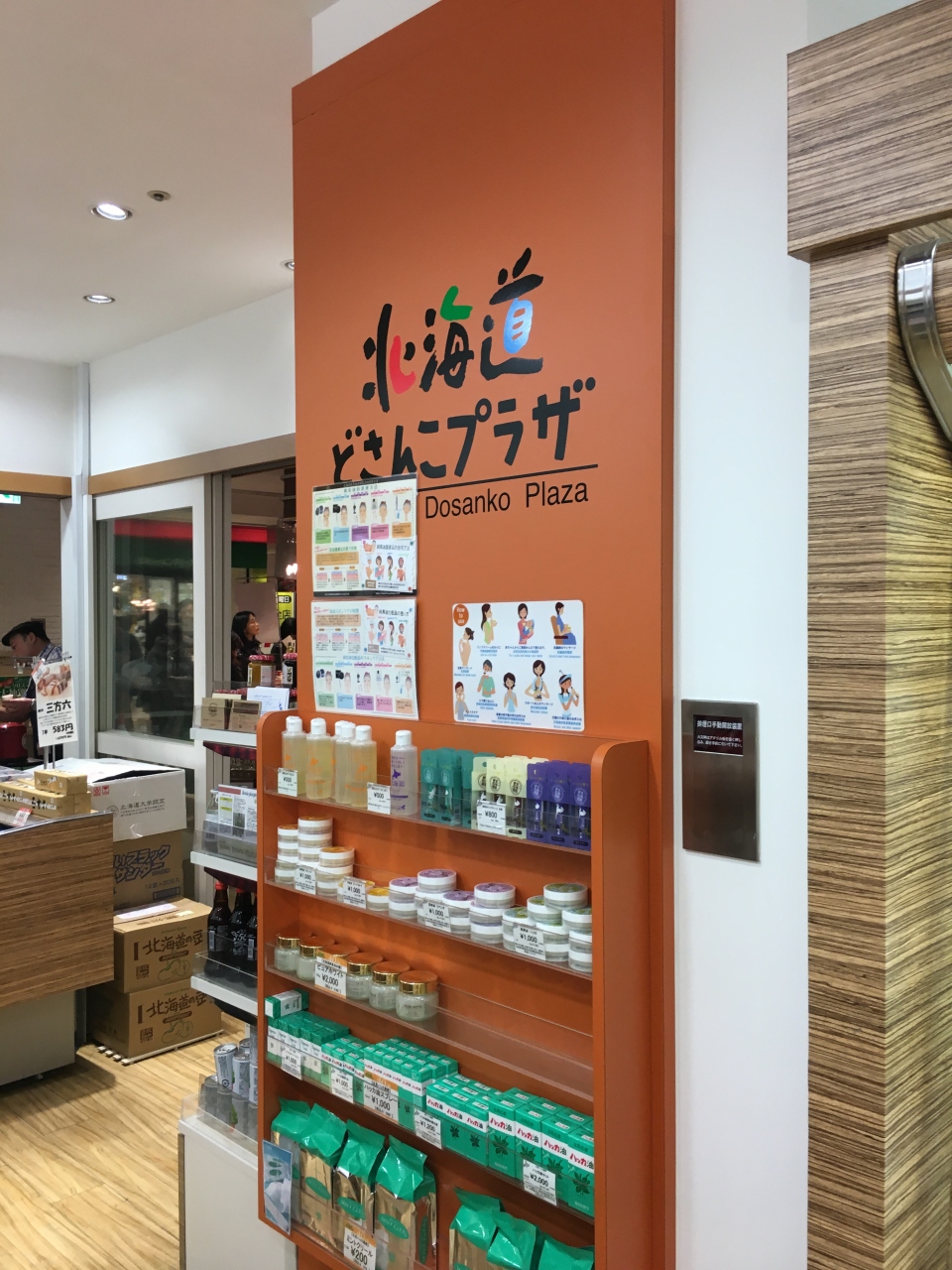 ISPにある北海道物産館です。北海道限定のハスカップ味のいろはすが売っていてわざわざ北海道で買った自分が情けなくなりました。北海道気分を満喫するにはオススメですが北海道限定だと思っていた商品がたくさんあるのでがっかりするかもしれません。