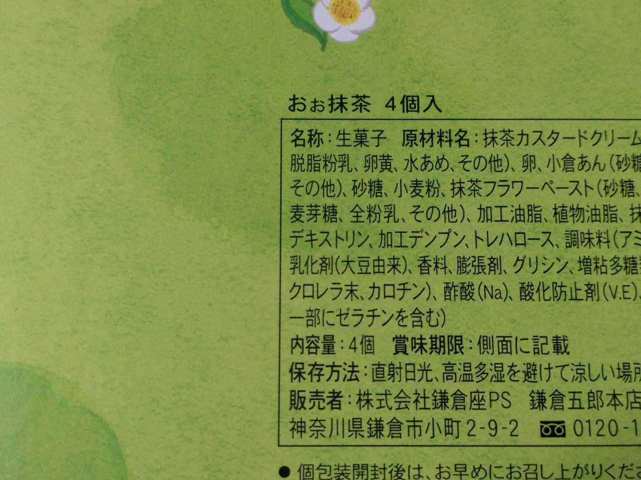 「鎌倉五郎 大丸東京店」は鎌倉半月っちゅう半円型のゴーフルが有名だ。これは食ったことあったから、別の抹茶菓子。お茶一ぷくって抹茶饅頭もうまかったがなかった。その代わりにおぉ抹茶にした。楕円形の抹茶スポンジケーキでうまかった。